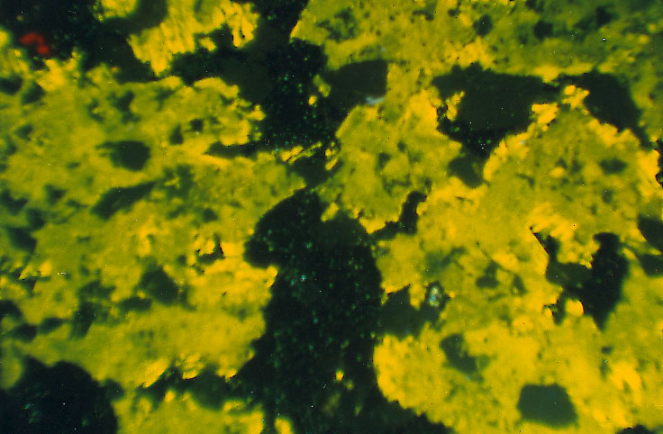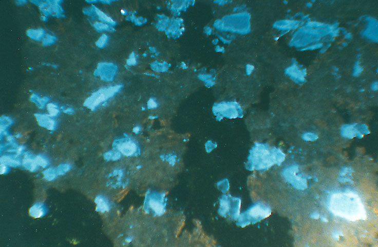 The examples below show a prehnite sandstone at room temperature and at low temperature. The intensity of the quartz CL is greatly increased at low temperature and all of the blue-luminescing grains in B are quartz grains which were not recognized easily at room temperature.