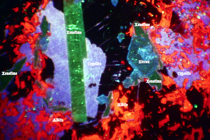 The first example is a CL image of xenotime and associated minerals in peralkaline granite.