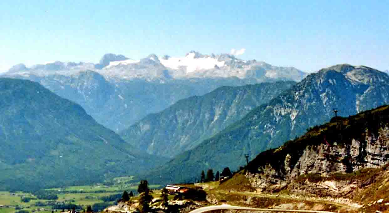 View of the Dachstein mountain range and the Hallstatt glacier, near the village of Dachstein, Austria. The Dachstein massif is dominated by the Dachstein-Kalk, dating from Triassic times. Rock salt has been mined in this area for more than 2,500 years. The area is also of great interest to archaeologists and they continue to find new interesting artifacts there — maybe another frozen traveler from the past? Photos courtesy of Dr. Johann Ponahlo, Vienna.